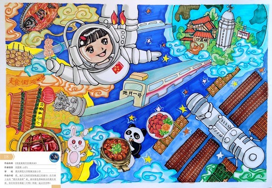 重庆师范大学附属实验小学刘莲锦的绘画作品《欢迎来到月宫重庆站》,1月21日除夕当天在中国空间站第二届“天宫画展”亮相。中国载人航天工程新闻宣传办公室供图