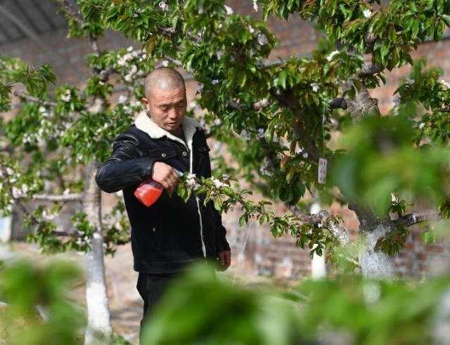 新型日光温室大棚里,延安市宝塔区河庄坪镇村民正在忙碌。新华社发(邹竞一 摄)