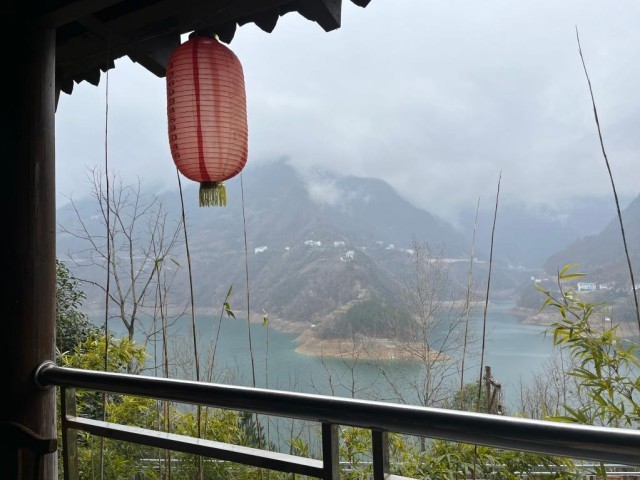 从“姜家酒庐”的观景平台上远眺巴山湖。新华社记者周思宇 摄
