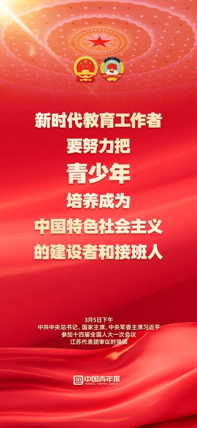 3月5日下午,习近平总书记在参加江苏代表团审议时指出,新时代教育工作者要努力把青少年培养成为中国特色社会主义的建设者和接班人;要真正把青少年培养成为拥有“四个自信”的孩子。青少年是国家的未来,让我们共同奋斗,为孩子们撑起成长的蓝天!