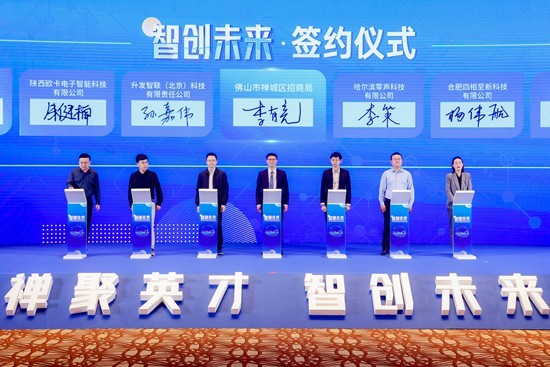 “智创未来”强国青年创业者寻访活动现场的签约仪式。禅城区委宣传部供图