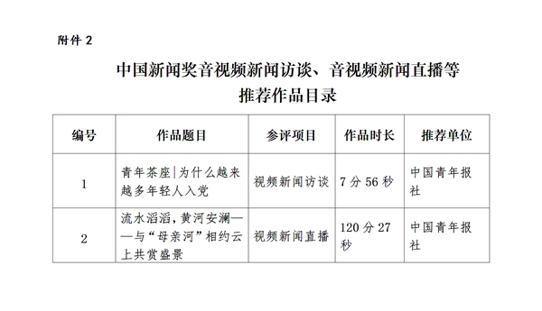 中国新闻奖音视频新闻访谈、音视频新闻直播等参评作品链接: