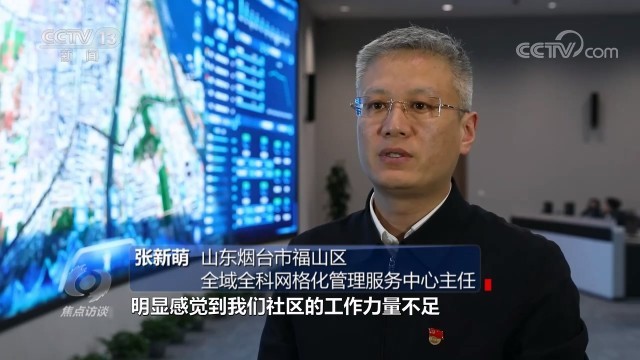 山东省烟台市福山区全域全科网格化管理服务中心主任张新萌:“基层群众的一些问题诉求还不能做到第一时间全部发现,并且给予迅速回应。又比如在疫情防控最艰难的时候,明显感觉到我们社区的工作力量不足,数字化、信息化赋能社区管理方面程度还不够,导致了基层的工作力量发现处置效率不高,能力不够。”