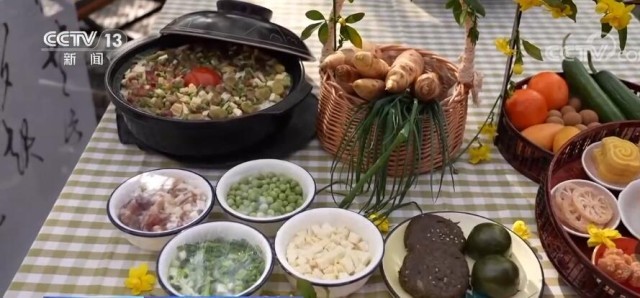 赶春集已经开起来了。这里展示很多非遗的手工艺,还有好玩的小物件和一些特产美食。说到美食,带大家看看春天里“舌尖上的的味道”。这是青团,用艾草的汁和糯米混合做成的,这是用的南瓜叶做成的。这是麦芽饼,用当地的一种野草和糯米粉混合制成。这个叫野火饭,它的配料有新鲜的春笋、豌豆、咸肉。
