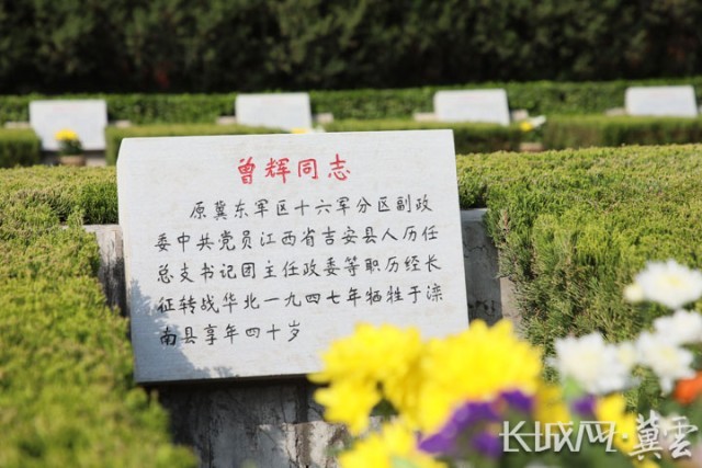位于华北军区烈士陵园内的曾辉同志墓碑。长城网·冀云客户端记者 李皓 摄