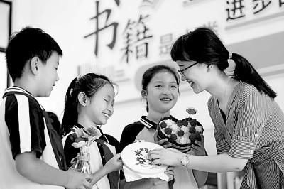 在安徽省合肥市瑶海区幸福路小学,孩子们亲手制作工艺品送给老师。解琛摄/光明图片