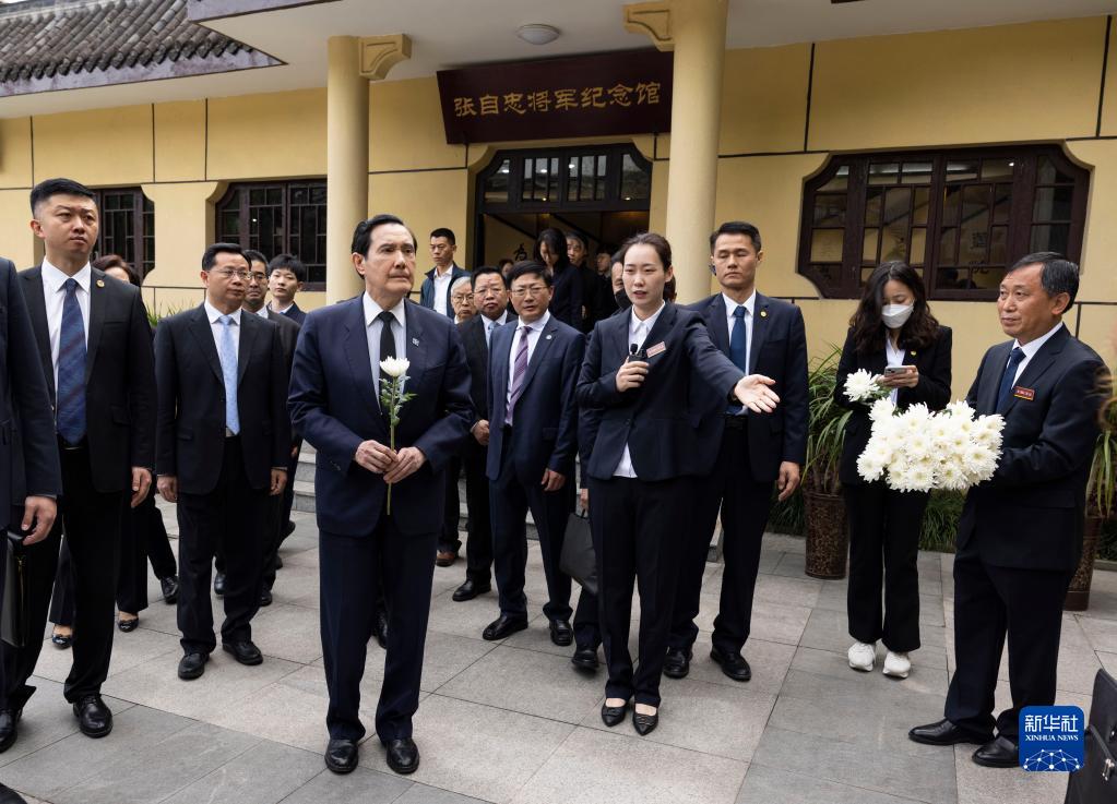 仪式前,马英九一行在张自忠将军纪念馆详细了解张自忠生平、事迹。马英九神情凝重,聚精会神倾听讲解,观看史料,不时询问。在展出的文物和历史图片前,台湾青年学生驻足思索,轻声交流感想。