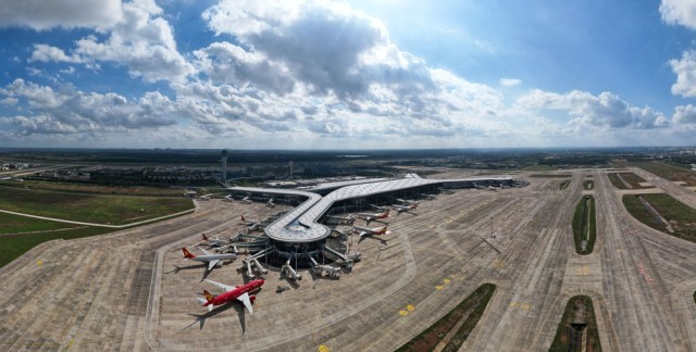 这是2021年11月20日拍摄的海口美兰国际机场二期项目(无人机照片)。新华社记者 杨冠宇 摄