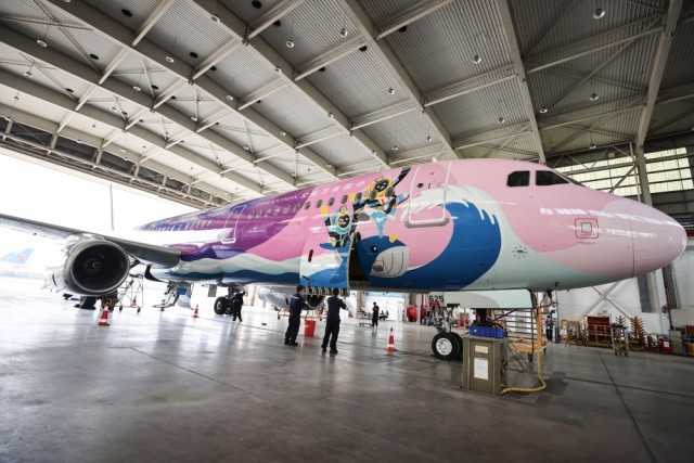 2023年3月7日,在海口美兰国际机场,南航机务人员对“消博号”彩绘飞机进行深度检查。新华社记者 张丽芸 摄