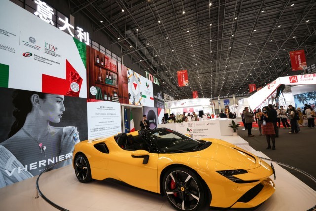 这是2023年4月10日拍摄的消博会意大利馆展出的跑车。新华社记者 张丽芸 摄