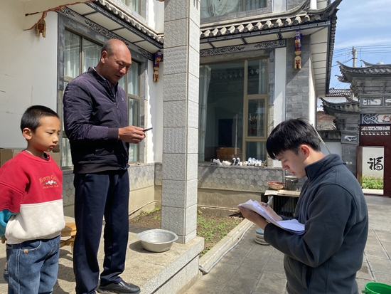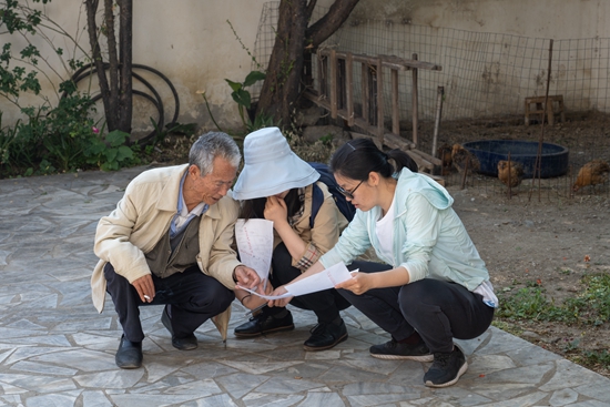 金可默(右一)对古生村生产生活状况进行调研。本文图片均由受访者提供