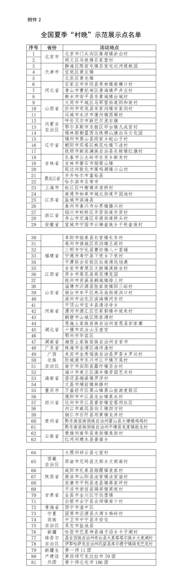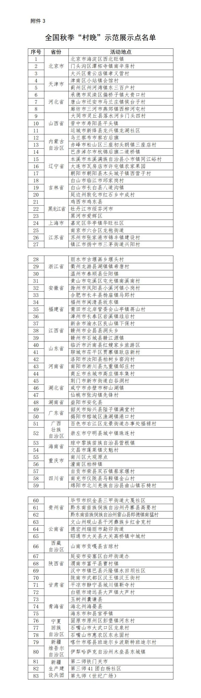 文旅部公布2023年“四季村晚”主会场和示范展示点名单