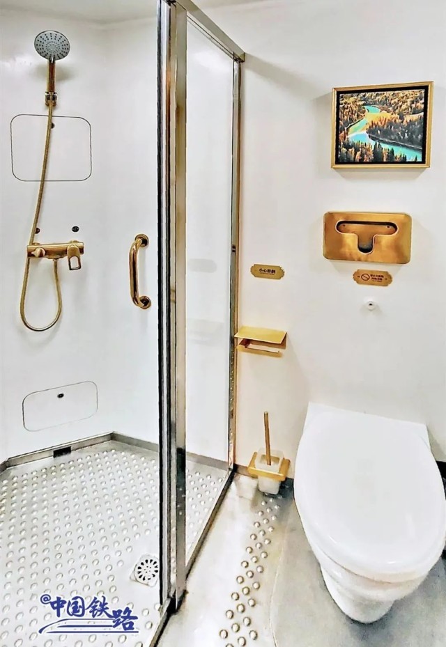 软卧车厢中有8节金钻车厢,每节车厢载客量8人,由4间套房组成,房间内配有1.5米大床,还设有独立卫浴间、书桌、衣柜等设施。