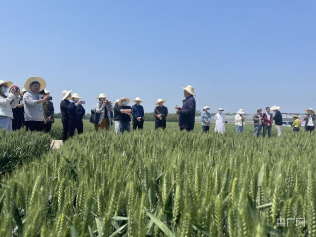 茹振钢为采访团讲解小麦培育技术(央广网见习记者 张丽娜 摄)