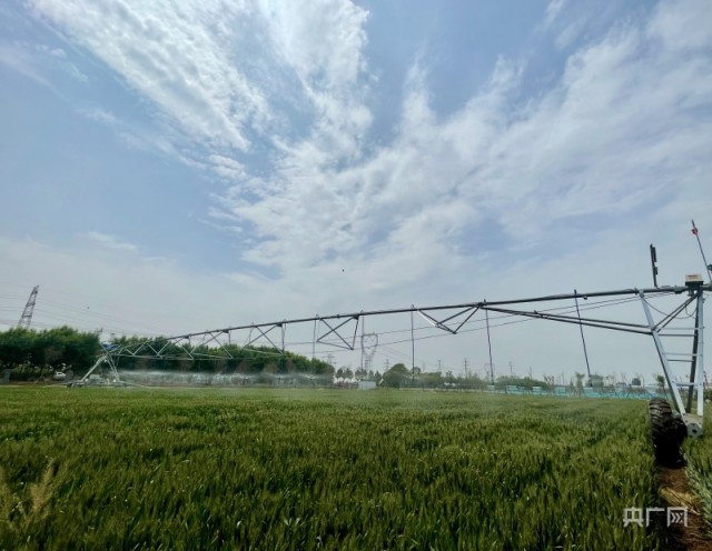中原智慧灌溉装备制造产业园生产的平移喷灌机(央广网见习记者 张丽娜 摄)