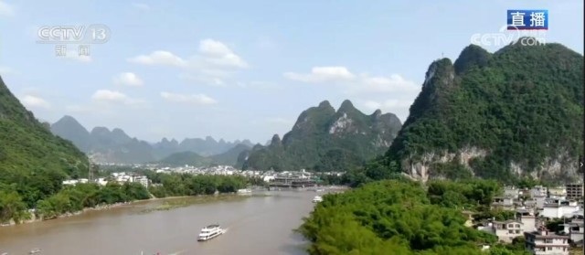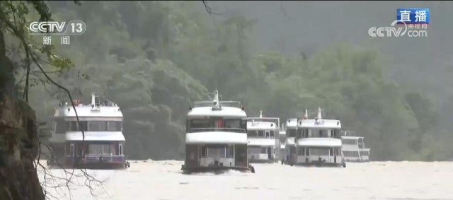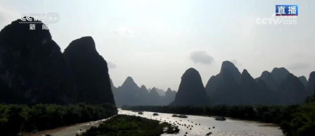 桂林山水甲天下,漓江沿线正是桂林山水最典型的代表。现在已经是广西的汛期,降雨开始增多。大家通过画面可以看到,漓江的水不像前几天那样清澈,这是因为前天,桂林刚刚经过一场强降雨,上游来水增加。在漓江之上,无论阴晴雨雾,都是不同的风景。像今天这样的晴天丽日,在漓江上穿行就像在欣赏一幅青绿山水;而在阴雨天,又像是穿行在传统的水墨画之中。根据桂林海事部门预测,“五一”假期,桂林水上发送旅客量超过30万人次,这几天旅游公司的船票基本上都是提前售完的状态。