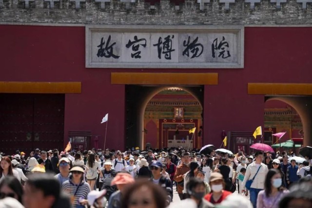 4月29日,游客在参观结束后走出故宫博物院。新华社记者 鞠焕宗 摄
