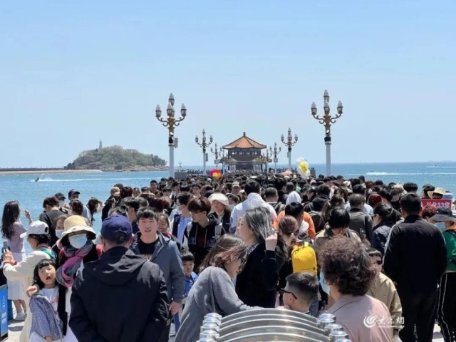 青岛:家人们谁懂啊,栈桥成了人桥