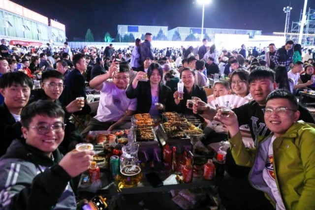 4月29日,游客在淄博市一家烧烤城吃烧烤。新华社发(朱伟 摄)