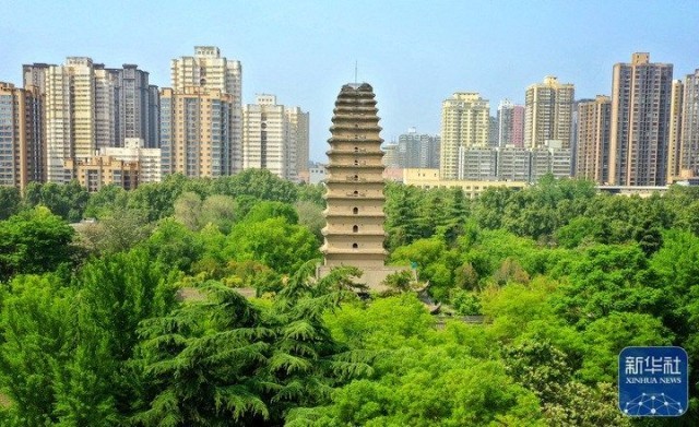 西安小雁塔(4月18日摄,无人机照片)。新华社记者 刘潇 摄