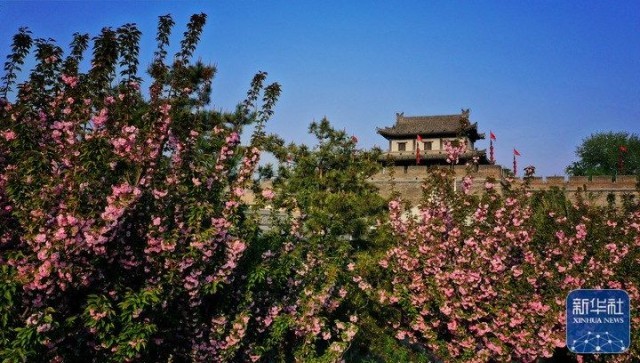 西安城墙掩映在繁花之中(4月1日摄,无人机照片)。新华社记者 刘潇 摄