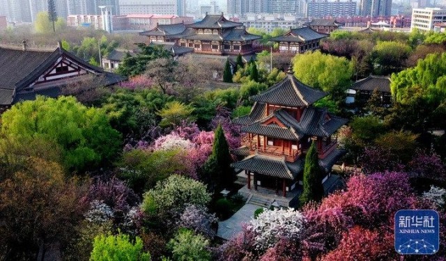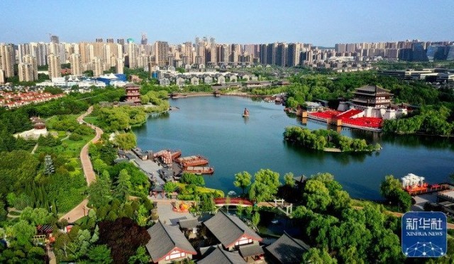 西安大唐芙蓉园(4月25日摄,无人机照片)。新华社记者 刘潇 摄