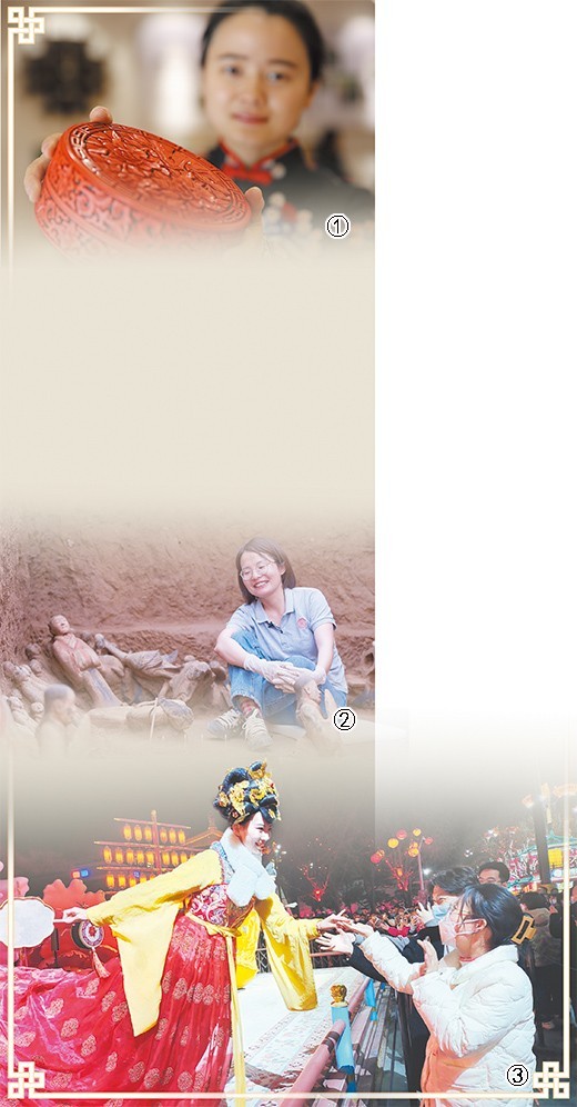 如今,冯佳晨还参与了新演出的创编以及宣传推广工作、拍摄公益广告和文旅推介视频、为陕西特色农产品带货……随着工作量快速增加,冯佳晨日益繁忙,虽然直呼时间不够用,但她也笑言很累很充实:“只要能对传播中华优秀传统文化、发展文旅产业有所贡献,我愿意当好一枚螺丝钉,尽自己最大能力去发光发热。”