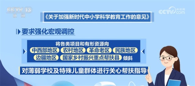 《意见》还要求强化宏观调控,将各类项目和有形资源向中西部地区、农村地区、革命老区、民族地区、边疆地区及国家乡村振兴重点帮扶县倾斜,对薄弱学校及特殊儿童群体进行关心帮扶指导。