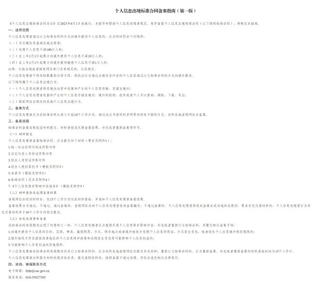 国家网信办发布《个人信息出境标准合同备案指南(第一版)》
