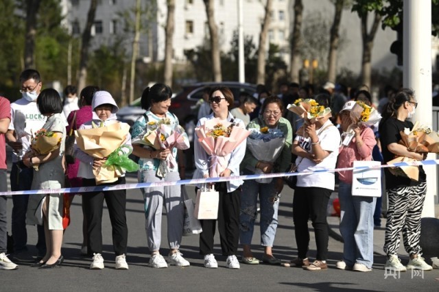 向日葵已经成为考场外标配(央广网发 郭亮 摄)