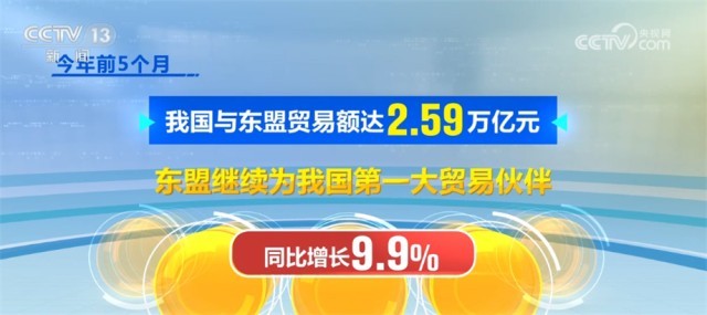 今年前5个月,我国与东盟贸易额达2.59万亿元,东盟继续为我国第一大贸易伙伴,同比增长9.9%。
