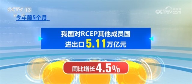 随着区域经济交往不断互联互通,我国对《区域全面经济伙伴关系协定》(RCEP)其他成员进出口稳定增长,今年前5个月,我国对RCEP其他成员国进出口5.11万亿元,同比增长4.5%,RCEP占我国外贸比重超过30%。