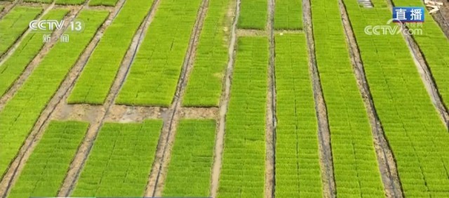 与早稻不同的是,这里种植的是中稻,现在气温比较高,所以是在大田里进行育秧。通过镜头可以看到,有的秧田里铺满了绿油油的秧苗,看上去非常有生命力。什么样的秧苗是好秧苗呢?大家看我手上拿着的这块苗盘,这些秧苗看上去非常地均匀整齐,高度在18厘米左右,叶片的颜色鲜绿,而且根部长出了很多这样的白色根系,这样有利于秧苗栽插过后能够很快地把根系扎到土壤里,提高成活率。
