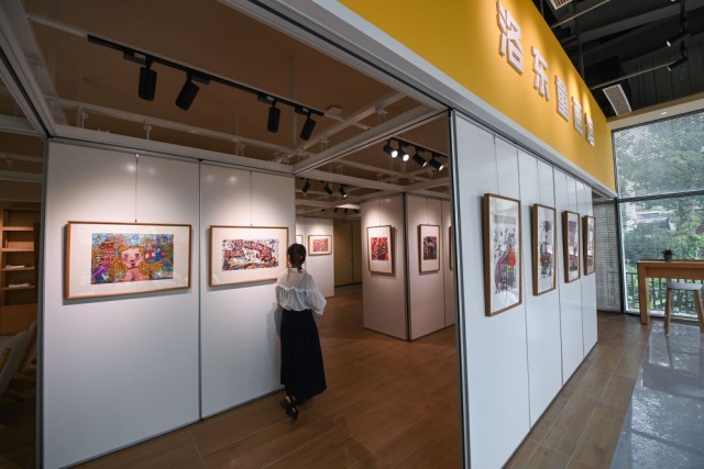 6月15日,游客在嘉兴市秀洲区新塍镇洛东村参观洛东童画馆。新华社记者 徐昱 摄