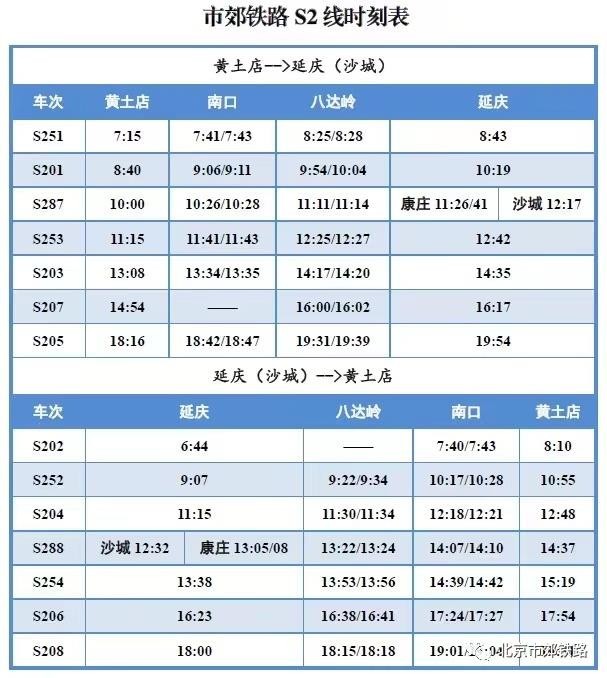 6月21日至22日 北京市郊铁路S2线每日开行7对列车