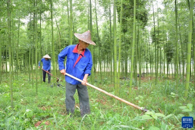 农户在福建省建瓯市井岐村一处雷竹林里锄草(6月8日摄)。新华社记者 张华迎 摄
