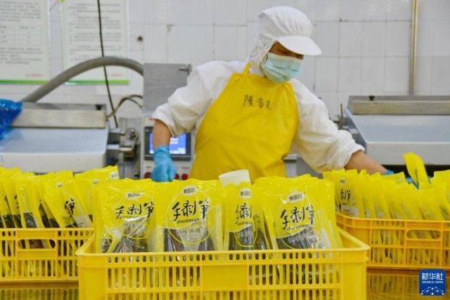 工人在福建省建瓯市一家笋竹加工企业加工手剥笋产品(6月8日摄)。新华社记者 张华迎 摄