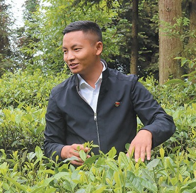 立克拢拢在茶园查看茶叶病虫害防治情况。受访者供图