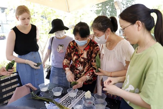 “不仅是端午节,我们在元宵节和春分时节也举办过类似的文化市集,我们希望通过这样一脉相承的活动,唤起人们的传统文化情节。”李露思观察到,很多游客都沉浸其中,在40℃的高温天气里,仍然有许多家庭全家出动,很多小朋友还穿着汉服,甚至还有外国友人主动在公众号留言希望能够一起包粽子。
