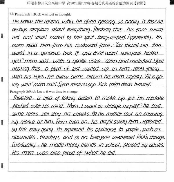 心有所想,行亦随之。2023年高考,李兰实现预期目标,考出超云南省理科一本线6分的好成绩。
