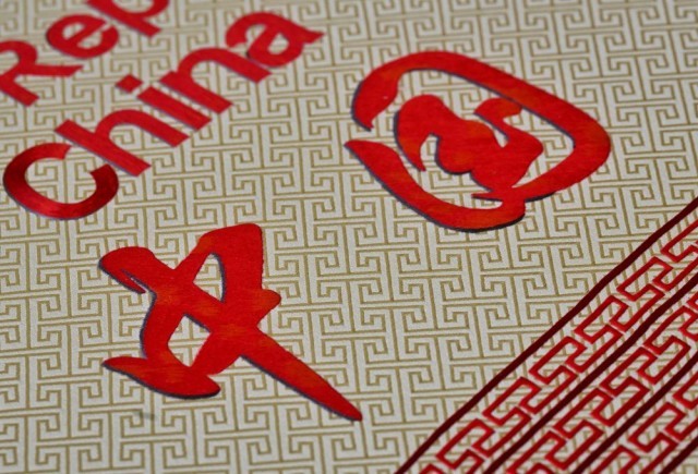 用蜀绣在蜀锦上绣制的引导牌。新华社记者 刘坤 摄
