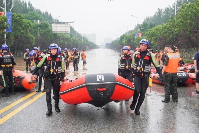 山东省消防救援总队跨区域增援队在河北涿州、高碑店执行任务。其中涿州任务区主要以排水排涝任务为主,高碑店任务区主要以疏散转移人员为主,截至8月4日18时,总队出动车辆60余辆次、人员400余人次,舟艇30余艘次,营救转移人员11起、排水排涝9起。