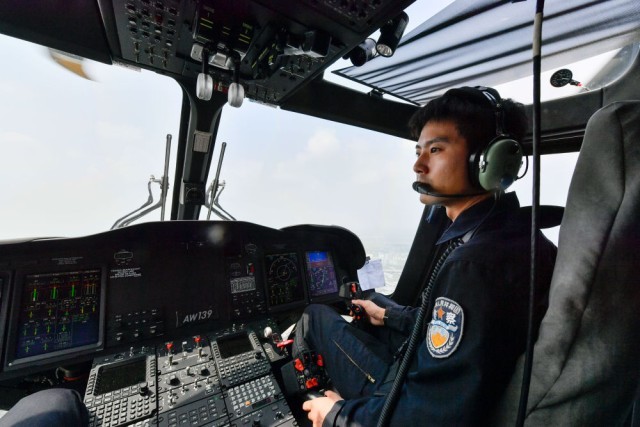 8日,天津市公安局警务航空总队驾驶员在天津防洪重点地区上空监测防洪情况。新华社记者 孙凡越 摄