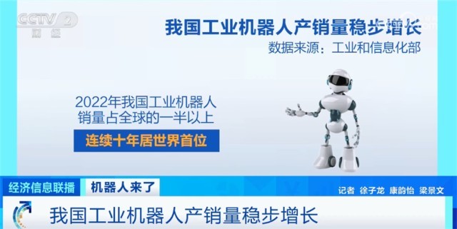 数据显示,2022年,我国工业机器人销量占全球的一半以上,连续十年居世界首位。2023年上半年,我国工业机器人产量达22.2万套,同比增长5.4%。