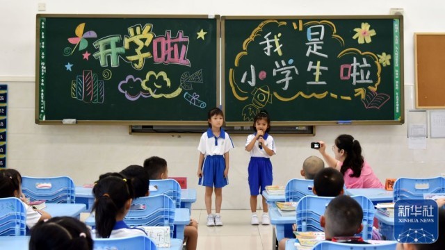 8月29日,深圳市翠北实验小学一年级学生在向同学老师进行自我介绍。新华社记者 王丰 摄