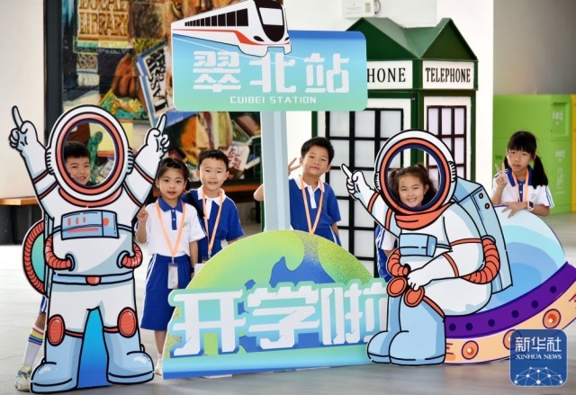 8月29日,深圳市翠北实验小学一年级学生来到学校报到。新华社记者 王丰 摄