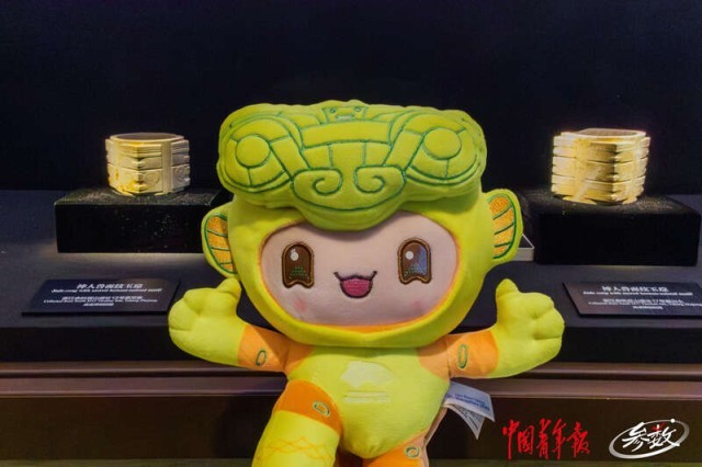 良渚博物院是一座集收藏、研究、展示和宣传良渚文化等功能为一体的考古遗址博物馆。良渚古城遗址有“中华第一城”的美誉,是实证中华五千年文明史的圣地。“琮琮”的设计灵感源自良渚文化的代表性文物玉琮,在设计中运用了玉琮的神人兽面纹和鱼鳞纹元素,在色彩上选用了玉琮特有的南瓜黄。