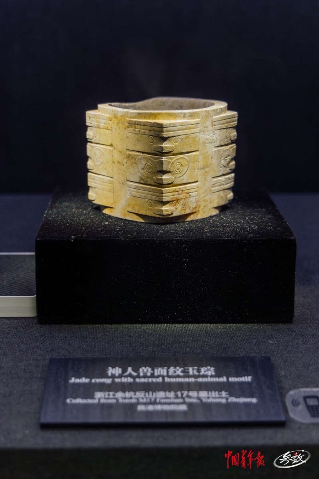 陈列在良渚博物院内的玉琮。 实习生 汪苗/摄