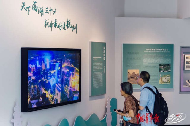 杭州西湖博物馆内,游客在观看视频。 实习生 汪苗/摄