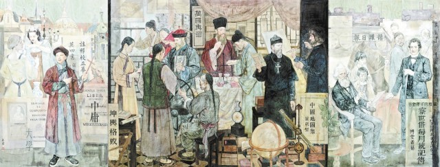 作为“一带一路”国际美术工程的入选作品,《传教士与东西方文化交流》也是卢志强倾力创作的一幅画作。在这幅画中,他让众多历史人物跨时空相会,包括罗明坚、利玛窦、徐光启、汤若望、沈福宗、郎世宁、伏尔泰等,他们都曾在中外文化交流中起到重要的作用,是西学东渐、东学西渐的传播者和宣传者。
